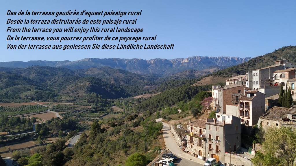 CAL DON JUAN ist eine ländliche touristische Wohnung in Torroja del Priorat (Tarragona) mit Blick auf den Montsant. Es ist ein Haus aus dem 19. Jahrhundert, das von Don Juan Vall i Vall, einem Urgroßvater des Besitzers und historischem Charakter von Torroja, erbaut wurde. Die Wohnung, ca. 50 m2, komplett renoviert, ist im Erdgeschoss auf Straßenniveau gut erreichbar. Es verfügt über ein Schlafzimmer mit Doppelbett, ein Badezimmer mit Dusche, Warmwasser, ein Wohnzimmer mit TV und ein Schlafsofa für zwei Personen, eine voll ausgestattete Küche (Mikrowelle, Elektroherd, Herd, Kaffeemaschine, Waschmaschine, Trockner usw.), WLAN, Heizung, großes Esszimmer und Terrasse von 20 m2 mit herrlichem Blick auf Torroja del Priorat und Montsant (siehe Fotos).